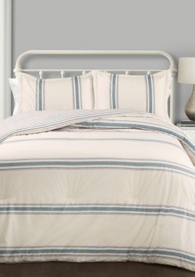 The comforter features polyester and cotton construction for an ultra cozy feel. Lush decor comforter farmhouse stripe 3 piece reversible bedding set the simple stripe pattern in your choice of red blue or gray against a creamy off white colored background is easy to match with many home decor styles especially farmhouse. Lush decor farmhouse stripe comforter set is durable soft padded stays in place well very comfortable as well.
