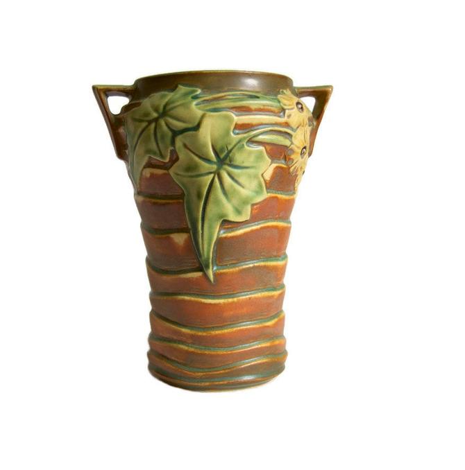 Roseville Luffa Vase 688 8 Vintage American Art Pottery Fine Art Ceramics Collectibles Rustic Farmhouse Decor Retro Woodland Vase 1930s By Curiopolis