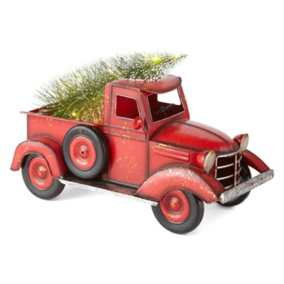 North Pole Trading Co Winter Farmhouse Red Truck With Lights Tabletop Decor