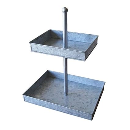 Brown Moo Decor 3 Tier Galvanized Metal Stand Large Twin Handle Farmhouse Style Serving Tray Perfect For Rustic Vintage Decoration In Kitchen And