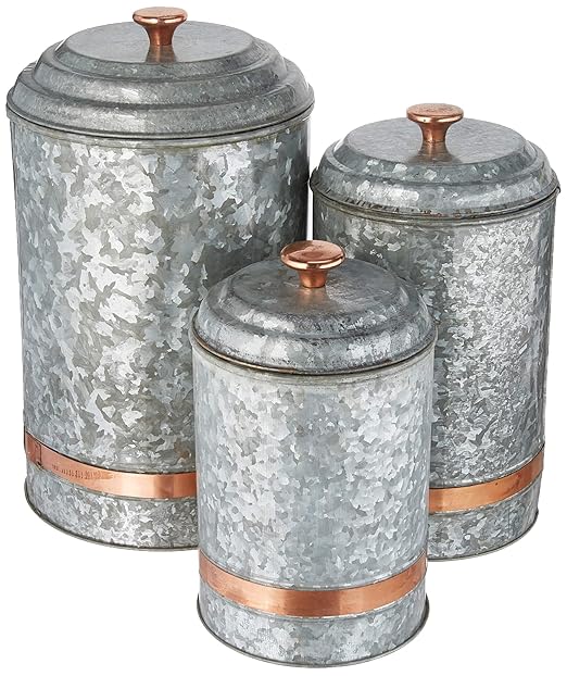 Coastal Space Designs Ir 23257 Vc Antique Style Galvanized Metal Lidded Rustic Canister Set Of Three Farmhouse Home Decor Accents Gray