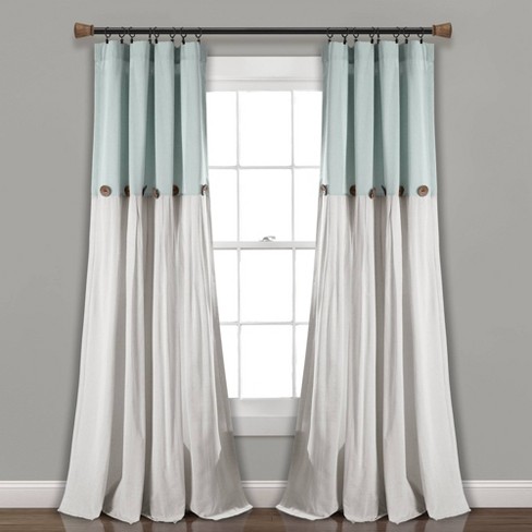 40 X95 Linen Button Single Light Filtering Window Curtain Panel Blue White Lush Decor